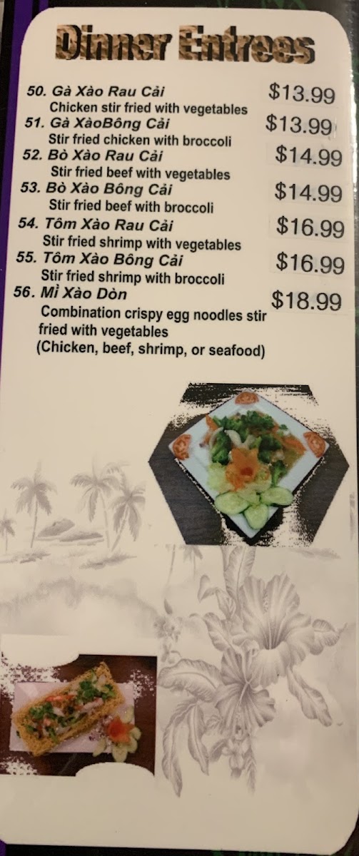 If you're seeking a true taste of Vietnam in Hershey, Pho Miss Saigon – PA 17033 is a must-visit. This cozy Vietnamese restaurant offers an array of authentic dishes that will transport your taste buds straight to Southeast Asia. The highlight of the menu is undoubtedly their Pho, with reviews praising the rich broth and generous seafood portions in the bowls. Customers rave about favorites like the Combination Beef Pho and seafood pho bowl, where tender shrimp, crab, and fish delight the palate. Vegetarians can revel in dishes like Stir Fried Vegetables served with rice, or adventurous eaters can indulge in flavorful Dinner Entrees such as Gà Xào Rau Cải (chicken stir-fried with vegetables). Don't miss out on pairing your meal with their refreshing Thai iced tea, which complements the dishes perfectly. With attentive service and a welcoming atmosphere, Pho Miss Saigon is set to become your new go-to spot!
